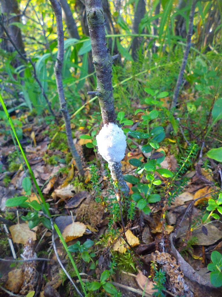 Кокон какого-то насекомого, возможно, цикады?Olgfox писал(а):Источник цитаты Вот что такое белое? Встретил на просеке ЛЭП.