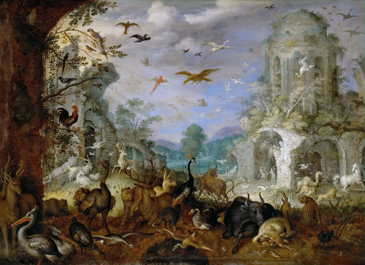 "Пейзаж с птицами" (в правом нижнем углу - ныне вымерший дронт).