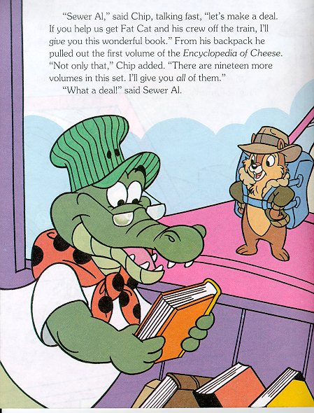 Сыру - мир!", Капоне содержал лавку для обмена сыра на золото, для которой он даже оборудовал подземную сыроварню прямо под молочной фермой, сделавшись в одночасье монополистом; однако благодаря Спасателям Капоне и его парней буквально смыло в канаву. Однако Капоне не растерялся, и уже на момент серии "